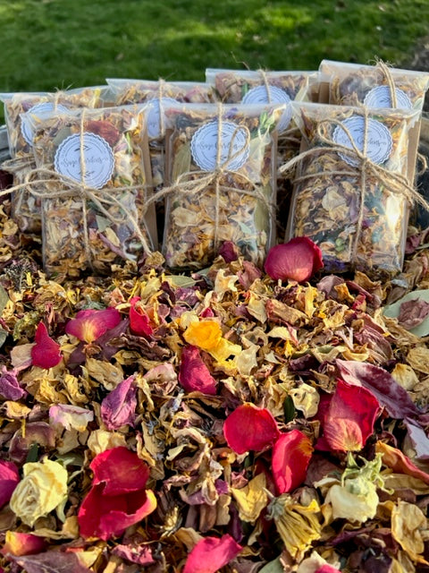 Our Potpourri is 100% natural and home grown, harvested, dried& hand packaged from our gardens in Huron, Ohio to your home. We are very proud of that! Sage gardens is home to over 45 Hybrid roses offering 43 different variaties. We tend to several perennial & annual packed flower beds for harvesting our botanicals.